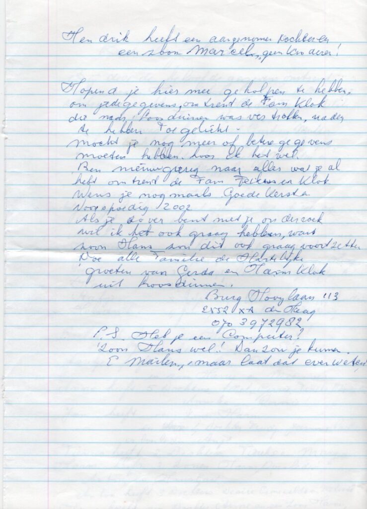 Deze brief schreef Harm Klok aan Hendrik. Het is niet bekend wanneer deze brief is geschreven. Erg mooi is het overzicht van de familie wat in de brief wordt gegeven.