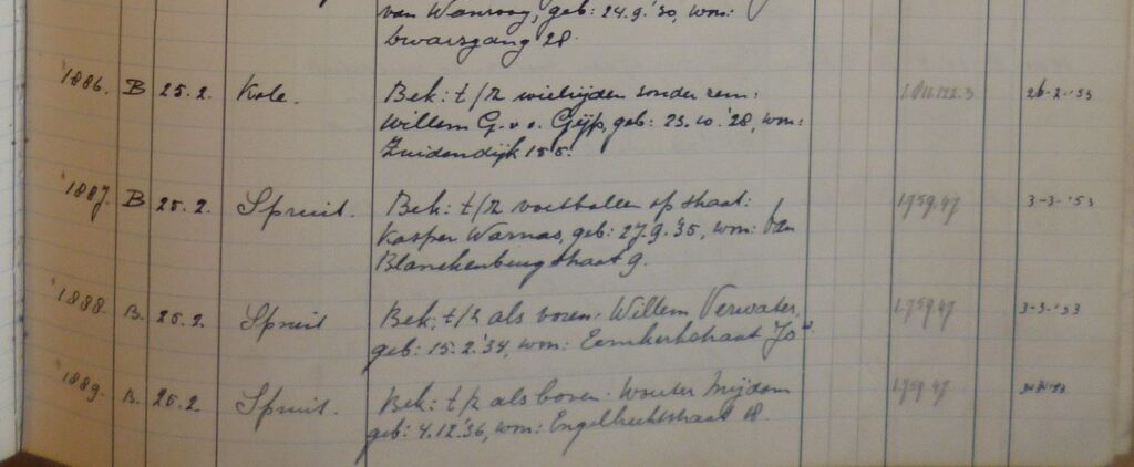 Zijn vader en de opa van de voetballende Wouter is trouwens ook een Wouter Mijdam… Alleen deze Wouter is in de 19e eeuw geboren. Verder is hij zover ik tot nu toe heb gevonden niet in aanraking gekomen met de gemeentepolitie van Dordrecht.