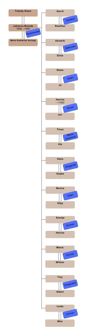 Het is mogelijk dat Lammert Brands uit Klazienaveen de L. Brands uit Dalerveen is. Echter vindt ik deze rouwkaart onvoldoende informatie om deze informatie definitief te besluiten.