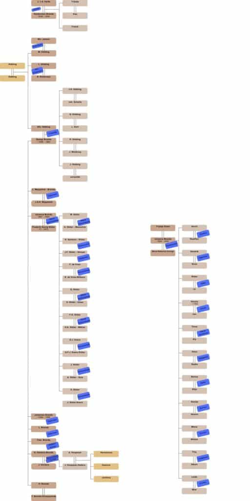 Voor deze kaart is het lastig om een correcte stamboom te maken. Er zijn namelijk twee vrouwen en 11 kinderen. Het is echter uit de kaart niet op te maken welke kinderen bij welke ouder horen.